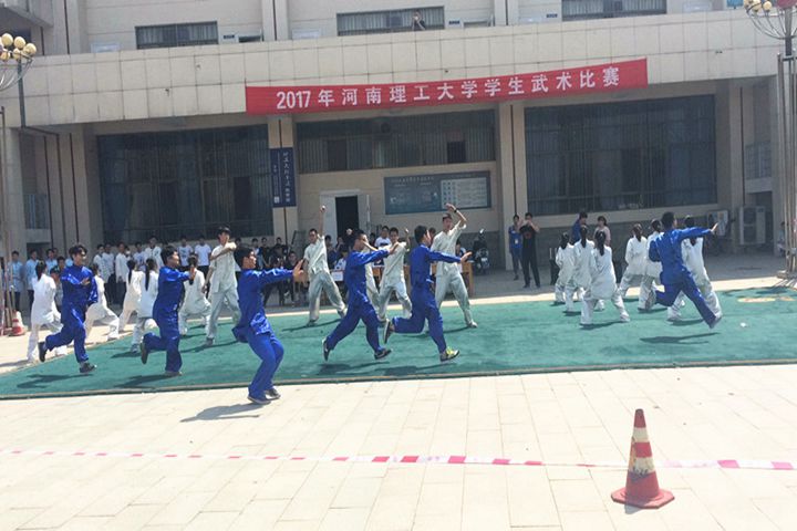 5月20日上午,2017年体育节暨运动会河南理工大学学生武术比赛在我校东运动场拉开了帷幕。此次学生武术比赛共设10个单项,1个集体项目,共有13个学院,78名学生参与。经过近三个小时的激烈比拼,能源学院的蔡际榜,数信学院的朱美晨分获得了男子长拳和女子长拳的第一名;测绘学院的杨浩夺得了男子少林拳的第一名;万方学院的张景豪获男子其他拳术的第一名;测绘学院的张玲君获得女子其他拳术的第一名;能源学院的蔡际榜获得男子棍术的第一名;机械学院的王恒获得男子其他器械的第一名;数信学院的朱美晨获得女子枪术的第一名;计算机学院的常振华获得女子剑术的第一名;集体项目的冠军则被测绘学院夺得。