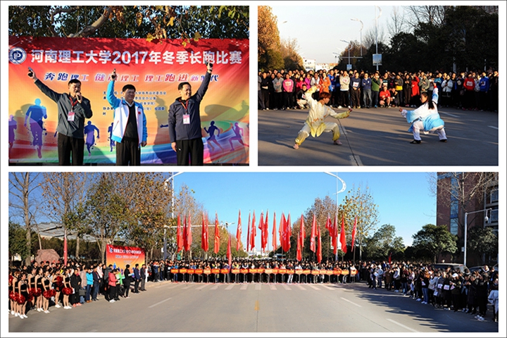 12月5日下午,由校体育运动委员会、校工会委员会主办,体委办、校工会文体部和体育(太极拳)学院承办,宣传部、学生工作部(处)和校团委、保卫处等职能部门协办的河南理工大学2017年师生冬季长跑比赛在南校区举行。校党委书记邹友峰、校党委副书记安士伟、校纪委书记陈自录、副校长赵俊伟、校工会主席解伟出席起跑仪式并为比赛发令。