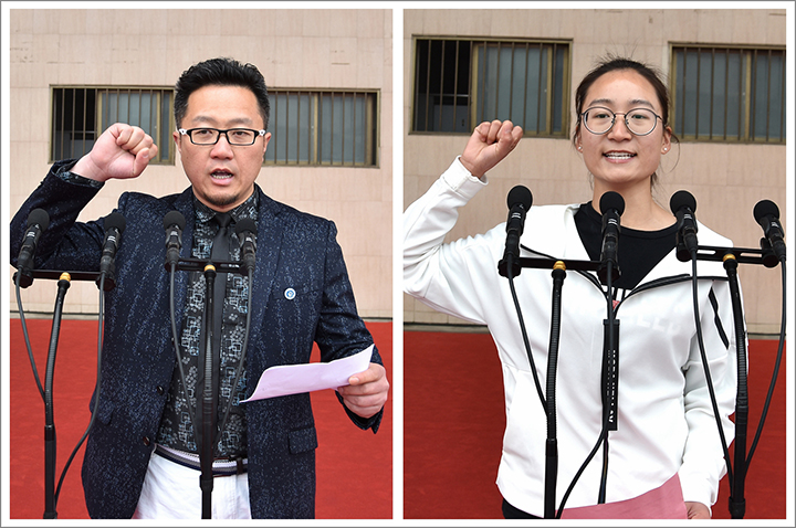 体育学院教师梁华伟、安全学院学生闫珊珊分别代表裁判员、运动员宣誓。