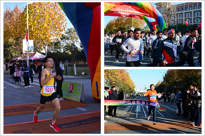 本次比赛分为男子组、女子组和教工组,来自全校各个学院及单位的近1600名学生和800名教职工参加比赛。学生男子组全程约10000米,学生女子组和教工组全程约5000米。赛前,在体育学院健美操专项师生带领下,参赛人员伴着热情洋溢的音乐进行热身运动,全场氛围热烈,选手情绪高涨。经过充分准备,随着发令枪响,运动员像离弦的剑一般猛冲出去,观众们的加油助威声此起彼伏。