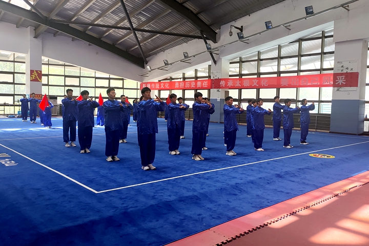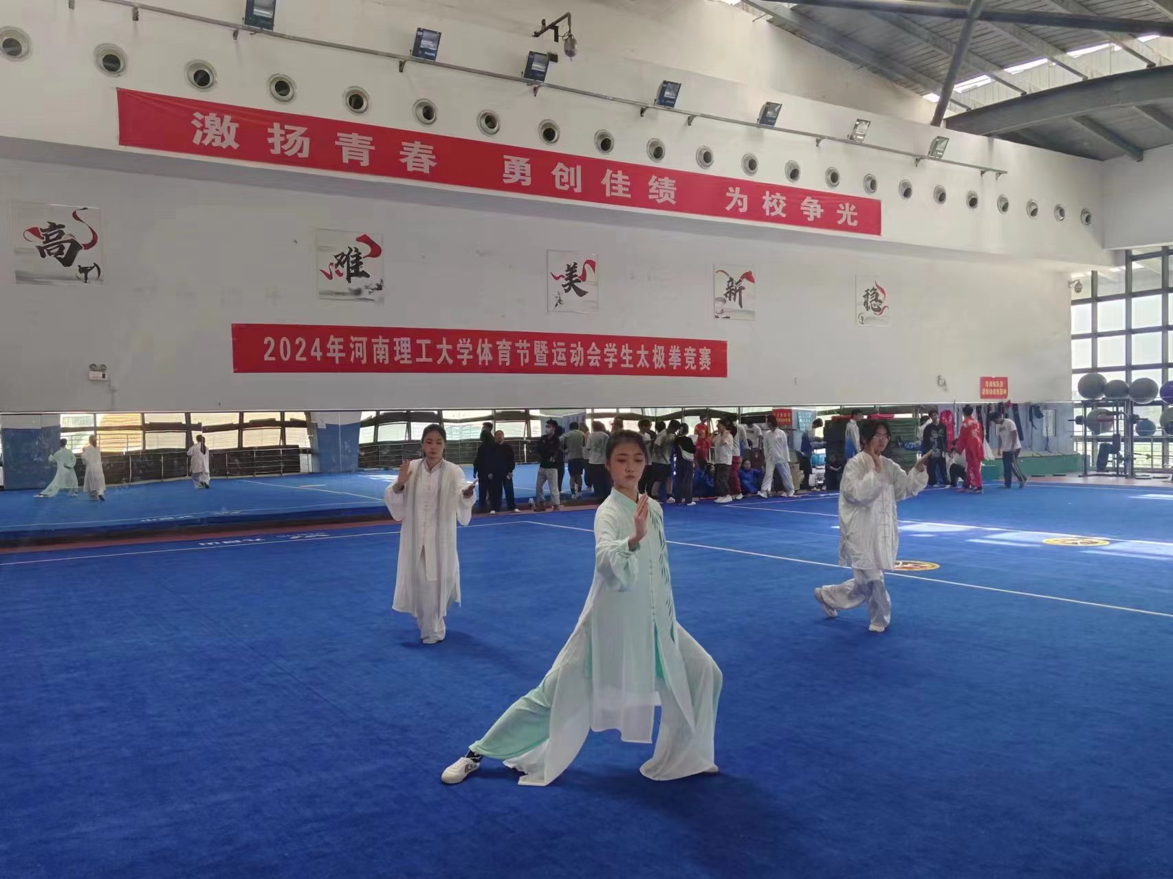 赛事精心设置了多个竞赛单元,涵盖了陈式太极拳、其他太极拳流派、短器械及长器械太极拳比赛,全面展现了太极拳的多元魅力。比赛分设男子、女子个人赛及团体赛,吸引了众多才华横溢的参赛者。赛场上,选手们身穿统一的太极服,一动一静间透着一股淡定与沉静。每一个动作都是精心设计,仿佛是一幅水墨画,以舞姿演绎出太极之美。他们缓缓起步,仿若行云流水,又如同云卷云舒,动静结合之间蕴含着深邃的哲理,让在场观众全都为之倾倒。而太极器械组更是将传统的器械运用得淋漓尽致。选手们手持着太极传统器械,各种动作流畅自如,仿佛舞者与器械间有一种默契,每一个挥舞都是对传统文化的传承与弘扬,让在场师生见识到了太极文化的博大精深。