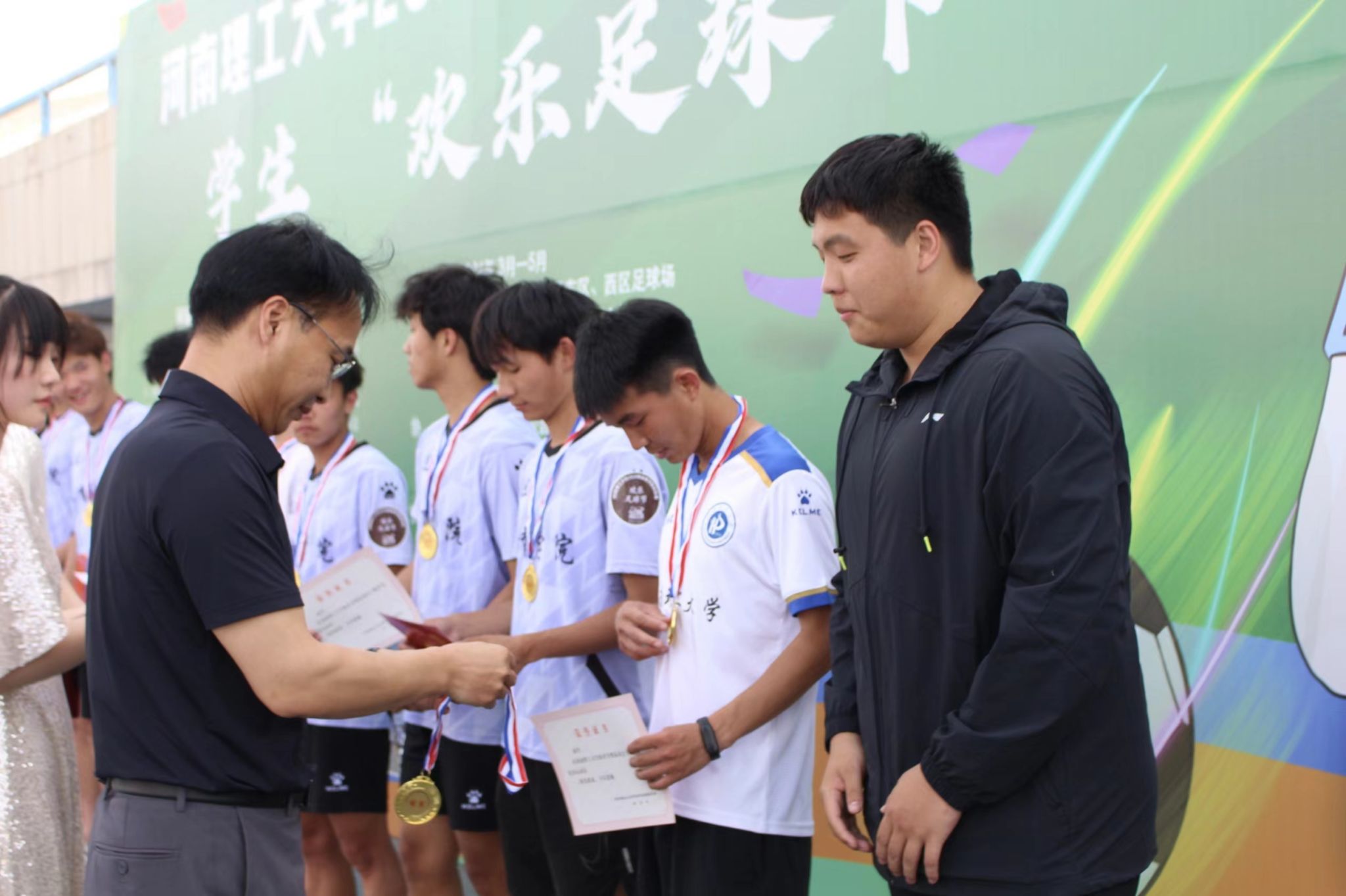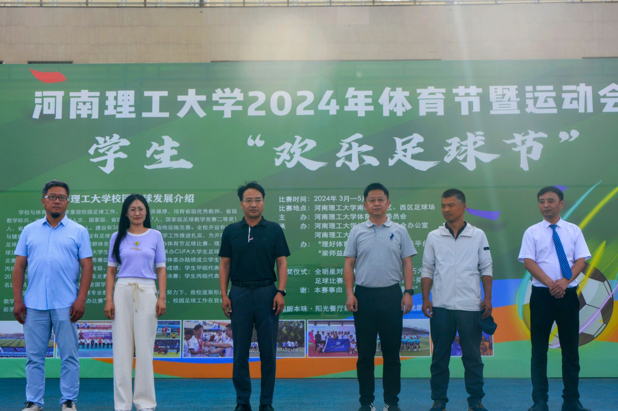 5月12日,学校体育场内人声鼎沸,欢呼声此起彼伏,为期一个半月的2024年体育节暨运动会学生“欢乐足球节”比赛圆满落幕。体育学院院长刘红波、体育学院副院长史明、体育学院群体中心主任李娟、体育学院足球专业教师梁华伟、黄俊魁、湘厨本味餐饮管理有限公司、阳光餐厅总经理邓斌等出席了本次比赛闭幕式。