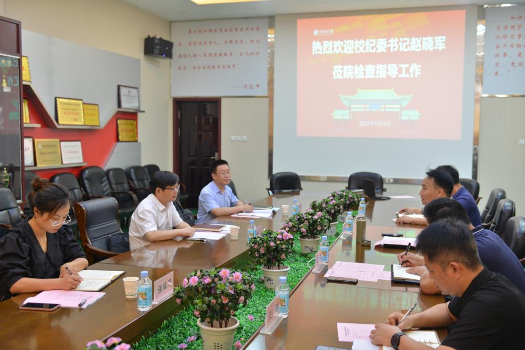 赵晓军在听取汇报后,对该院党委巡察整改工作给予了充分肯定,就学院党委如何进一步抓好抓实整改工作提出了要求:一是强化政治担当,认真履行学院党委巡察整改主体责任、党委书记第一责任人职责、领导班子其他成员“一岗双责”、纪检委员监督责任,确保巡察反馈问题真改实改“见底清零”;二是要以清廉学校创建和“明方向、立规矩、正风气、强免疫”专题纪律教育为契机,切实把全面从严治党要求落到实处,不断优化学院政治生态和育人环境;三是扎实做好巡察整改“后半篇文章”,建立完善有效的长效机制,推动巡察整改和成果运用走深走实,为学院高质量发展提供坚强政治保障。