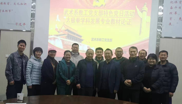 3月23-24日武术系党支部开展太极拳重点学科教材编写研讨会,体育学院副院长王柏利,太极拳名家康伟,武术系支部书记齐风猛及武术系全体成员参加会议,会议由武术系支部书记齐风猛主持。