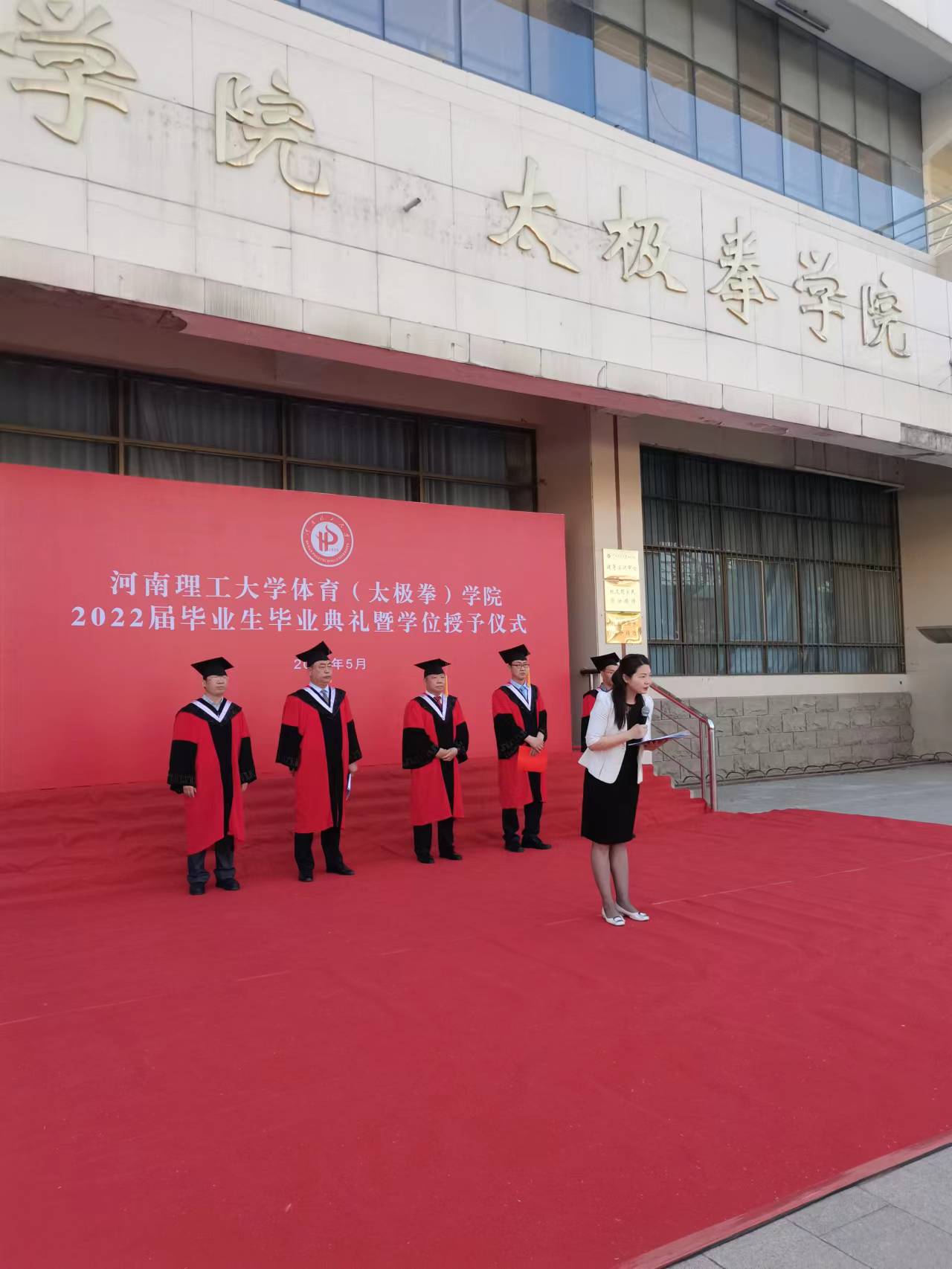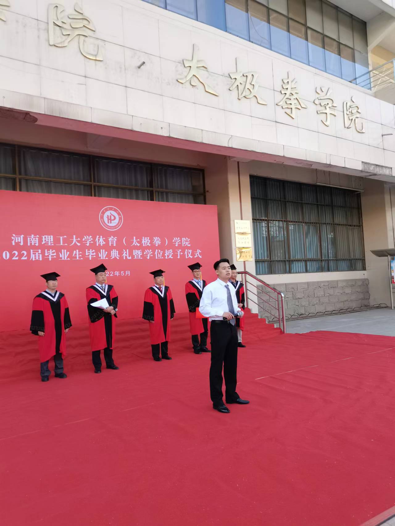 2022年5月30日上午7:00,体育学院在实训中心广场隆重举行了2022届毕业生毕业典礼暨学位授予仪式。体育学院党委书记马明、院长张纳新、党委副书记马志洋、副院长刘红波、副院长王柏利、辅导员黄会娟老师、孙玉景老师和部分教师代表、全体2022届毕业生同学共同出席了本次活动。