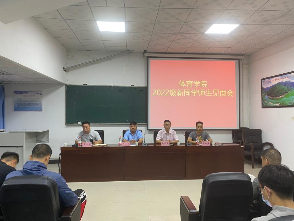 2022年9月20日晚上七点,体育学院在大会议室隆重举行了2022级新生开学典礼暨开学第一课。体育学院党委书记马明、院长张纳新、党委副书记马志洋、副院长刘红波出席了典礼。体育学院教师代表韩涛、王国亮、邱辉,高水平运动队教练员毋洪飞、原黎君、孟昭雯、陆琦,辅导员黄会娟老师、孙玉景老师,与2022级全体本科生、研究生共同参加了典礼。开学典礼由党委副书记马志洋主持。