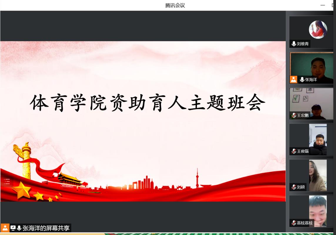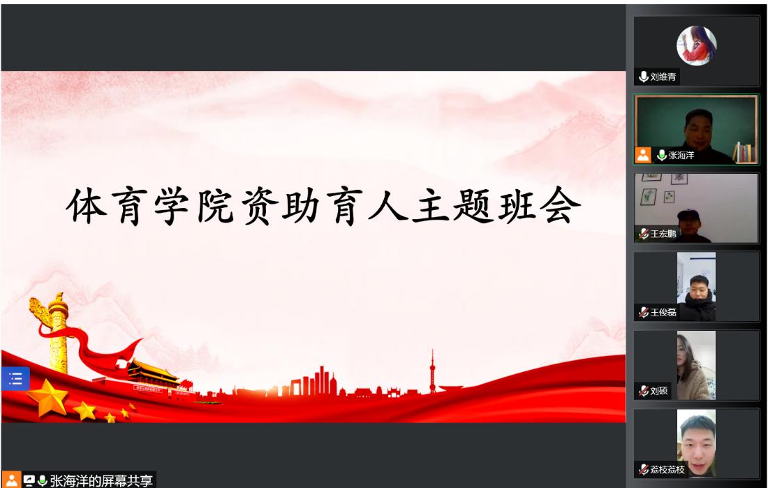 为切实做好学生资助工作,大力推进资助育人实效,2022年12月2号,体育学院专硕2021-1班召开了线上资助育人主题班会。班会上,张海洋班长详细解读了资助育人的相关政策,并分享了贫困家庭同学在国家政策的帮助下,积极进取,发愤图强的具体案例,引导同学们更好地了解资助育人的意义,自强不息,奋发向上,学会感恩,学会奉献。