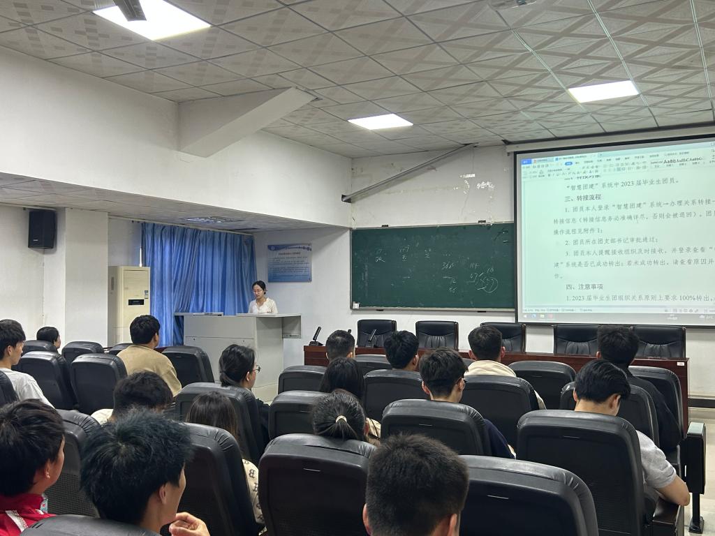 孙老师对2023年上半年团委各项工作进行了总结回顾,并对近期重点工作安排部署。一是希望团干部能够主动担当,积极作为,提高自身工作能力;二是要求团干部能够分清工作重点、明确工作方向;三是提醒团干部在提升能力的同时也要注重学习积累,全面发展。团委书记助理张玉静同学为大家讲解了毕业生团关系转出的操作步骤和青年大学习学习率提升等具体工作。