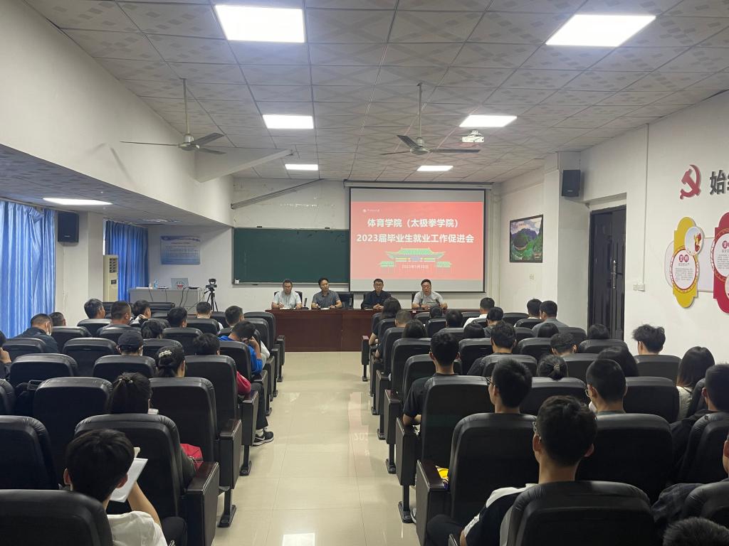 2023年5月30日下午,体育学院在大会议室召开了2023届毕业生就业工作促进会。学院领导班子、专业系(室)主任、辅导员、“一对一帮扶”教师和部分学生代表参加会议。会议由学院党委书记张纳新主持。