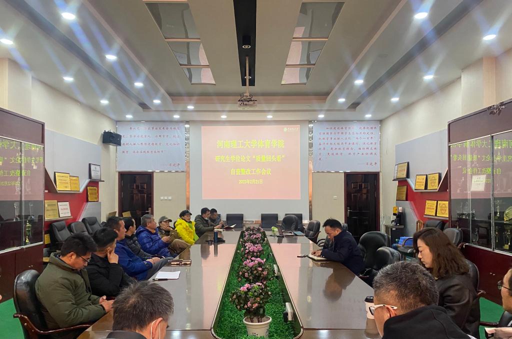 2023年2月21日下午,体育学院在小会议室召开研究生学位论文“质量回头看”自查整改工作会议。全体研究生导师和研究生秘书参加会议,会议由副院长刘红波主持。