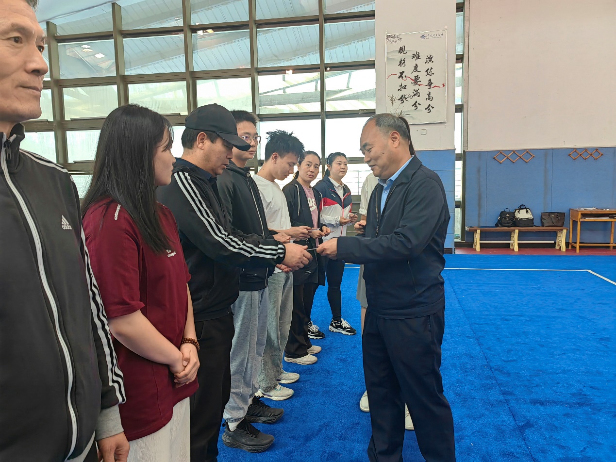 4月17日上午,中国非遗保护协会太极拳专委会在河南理工大学体育学院武术馆,举行太极拳专委会会员证颁发仪式。太极拳专委会副主任崔玉山、河南理工大学副校长边亚东出席仪式。体育学院领导班子以及太极拳专委会会员代表参加了仪式,仪式由体育学院院长刘红波主持。