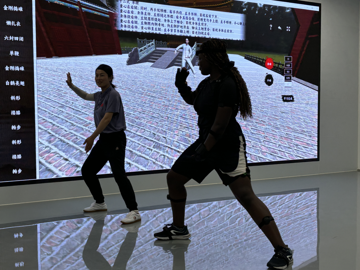 活动中,裴老师向留学生介绍了太极拳相关知识,进行了拳法展示,并对部分招式进行详细的分解动作讲解。包括起势、云手、玉女穿梭等,每一个动作都流畅自然,充满力量与美感。在随后的教学环节中,裴老师对留学生逐一指导并亲自示范纠正留学生的动作细节,留学生们认真观察学习老师的一招一式,跟随老师的演示一起练习。