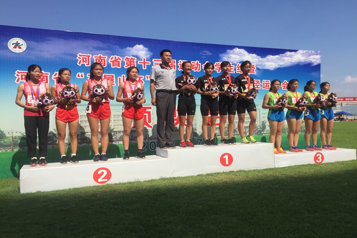 河南省运动会每四年举办一届,是全省水平最高、参与人数最多的体育盛会。本次大赛由河南省教育厅、河南省体育局主办,郑州大学、郑州大学体育学院承办,共有98所院校的1753名运动员参赛。我校田径代表团由副校长解伟担任团长,校体委办主任张笑莉担任领队,带领体育学院赵新平、刘永强、邓正龙、胡建平四位教练和18名运动员发扬理工精神,克服高温酷暑奋战七天,取得优异成绩。安全学院闫珊珊获得女子3000米、5000米两枚金牌;机械学院李龙获得男子1500米金牌;资环学院郑丽敏、李岩、安全学院孙芳、财经学院李晶晶获得女子4×400米金牌;资环学院郑丽敏、电气学院李玉涵、安全学院孙芳、财经学院李晶晶获得女子4×100米银牌;郑丽敏还获得400米栏银牌和100米栏铜牌;测绘学院易怀喜获得男子3000米、5000米两枚银牌;物电学院刘宇森获得男子400米栏银牌;机械学院王雨获得女子三级跳远铜牌。
