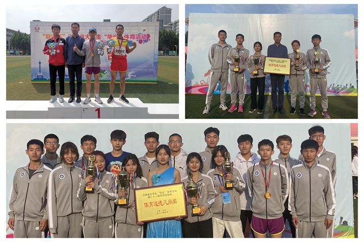 河南省大学生运动会每两年举办一届,本届运动会由河南省教育厅主办,河南省学生体育总会田径分会执行,河南牧业经济学院承办,河南省学生体育总会高校体协分会和河南农业大学协办,共有来自全省113所高校的1878名运动员和教练员参赛。根据赛制规定,各参赛队伍将分别在甲、乙、丙三个组别共36个项目中进行激烈角逐。我校田径代表团由校工会主席郭相春担任团长,体育学院院长张纳新担任领队,四位教练和19名运动员发扬理工精神,克服炎热奋战6天,取得优异成绩。资环学院陈仕东获得男子甲组400米栏金牌和400米第四名;外语学院刘慧丹获得女子甲组800米、1500米两枚银牌;体育学院王昊阳获得男子乙组跳远、三级跳远两枚银牌;测绘学院陆天琳获得女子甲组100米栏银牌和三级跳远第四名;电气学院徐乾华获得男子甲组5000米银牌和3000米第八名;材料学院陶鹏宇获得男子甲组跳高银牌;资环学院郑丽敏获得女子甲组100米栏、400米栏两枚铜牌;测绘学院王毅博获得男子甲组110米栏第四名;资环学院郑丽敏、能源学院胡玉捷、外语学院刘慧丹、测绘学院陆天琳获得女子甲组4x100米、4x400米接力第四名;机械学院戴新虎、资环学院陈仕东、测绘学院赵含旭、王毅博获得男子甲组4x400米接力第四名;体育学院许贻伟、潘一番、李嘉桦、孙建设获得男子乙组4x400米接力第六名;能源学院胡玉捷获得女子甲组跳远第六名和三级跳远第五名;能源学院刘安逸获得男子甲组三级跳远第五名;体育学院朱耀华获得男子乙组800米第五名和1500米第六名;机械学院戴新虎获得男子甲组110米栏第七名和400米栏第六名;文法学院冯宇获得女子甲组3000米第八名和5000米第六名;体育学院潘一番获得男子乙组200米、400米第八名。