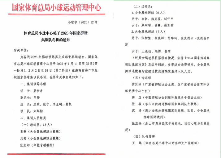 2025年1月7日,国家体育总局小球运动管理中心发文,公布了参加2025年国家掷球集训队冬训的名单。名单中共有教练员和运动员16人,其中有9人为我校培育的掷球人才,他们将牺牲节假日,于1月10日至2月19日在海口职业技术大学进行为期一个月的冬训。