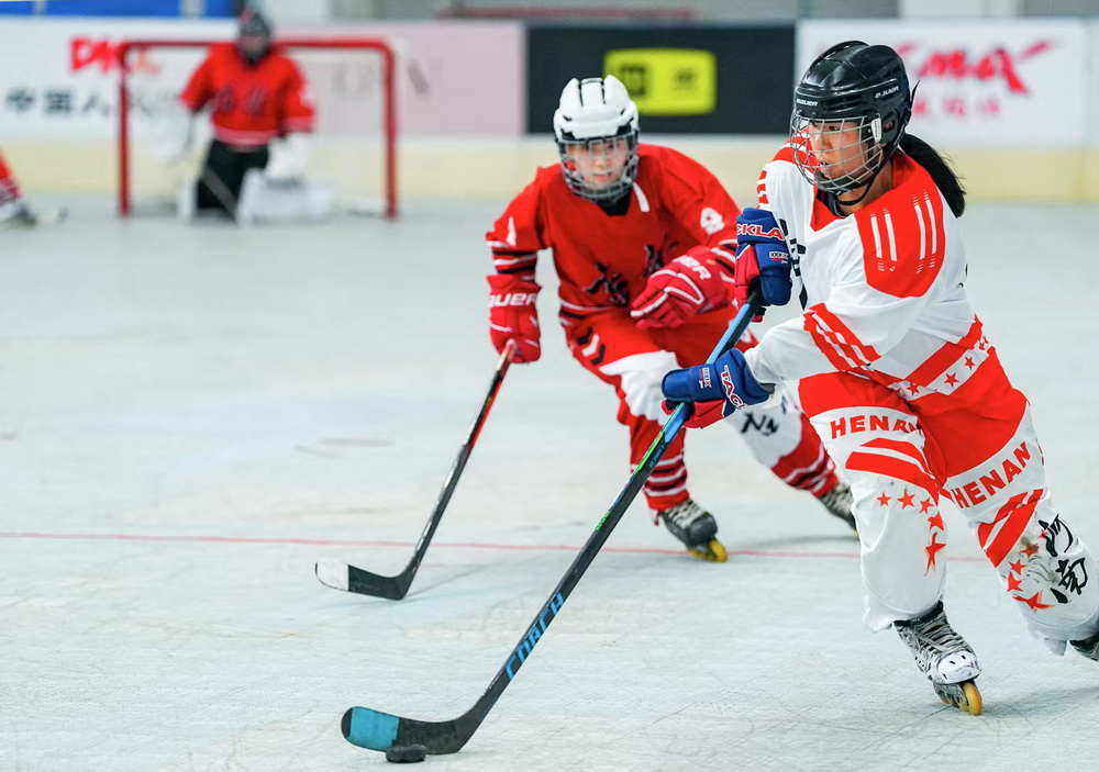 河南女子轮滑球队由河南理工大学和河南少林塔沟武术学校联合派出的优秀队员组建。比赛中,河南姑娘们不畏强手、奋勇拼搏,最终顺利晋级决赛圈。
