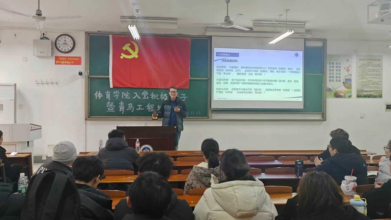 12月23日,学院在3号教学楼3309教室举行入党积极分子暨“青马工程”培训班培训活动。仪式在国歌声中启幕,学员代表李准发言,代表学生以党员标准严格要求自我,在实践中发挥先锋模范作用。马志洋代表学院党委致辞,强调培训的重要性,教育学生树立为共产主义奋斗终生的理想,严格要求自己,成长为堪当民族复兴重任的时代新人。党委书记张纳新、院长刘红波现场授课,将体育学科特色融入课程思政,助力学员筑牢信仰之基。
