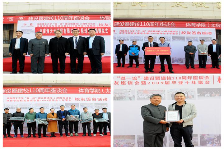 10月19日,体育学院(太极拳学院)在该院院楼前举行系列校友校庆捐赠仪式。该院党委书记马明、院长张纳新等院领导和与会校友、部分教师及学生代表一同参加参加了仪式。