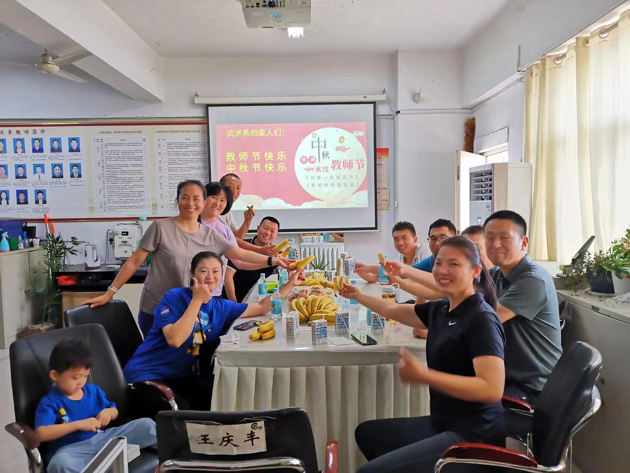 一年一度秋风劲,不是春光,胜似春光,伴随着防疫背景下迎接学生返校工作的有序开展,我们也迎来了我国第38个教师节,2022年恰逢教师节与中秋节双节同日,为充分发挥传统节日内涵、弘扬传统文化,激励教师以更加饱满的精神投身于学校的教育事业,着力营造“心往一处想,劲往一处使、齐心协力干事业”的浓厚氛围, 武术系于9月9日上午开展了主题为“欢聚一堂话双节 齐心协力叙发展” 教师、中秋双节茶话会活动。