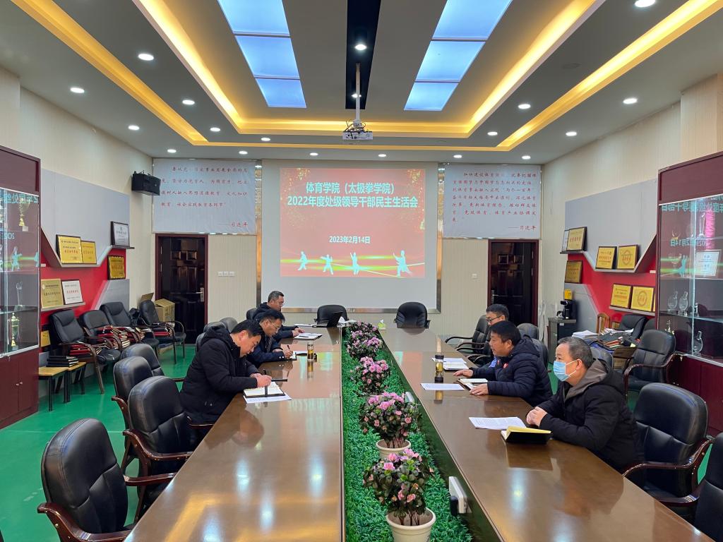 2月14日上午,体育学院(太极拳学院)在小会议室召开2022年度处级领导干部民主生活会,学院全体处级干部参加了会议。会议由学院党委书记马明主持。