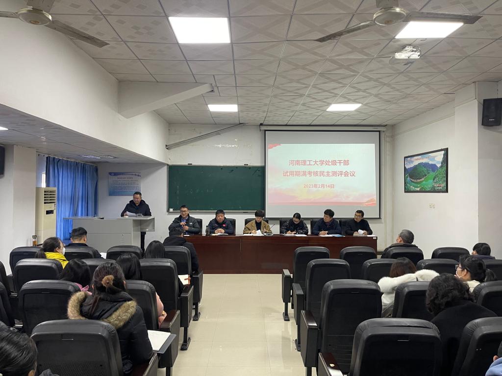根据《党政领导干部选拔任用工作条例》、《党政领导干部考核工作条例》和《党政领导干部任职试用期暂行规定》等文件精神和我校党委组织部相关要求,2月14日下午,体育学院处级领导干部试用期调查评议会议在学院大会议室举行,学校考核组组长茹艳一行4人负责对我院新提任处级干部进行考核。会议由党委书记马明主持,我院全体教师参会。