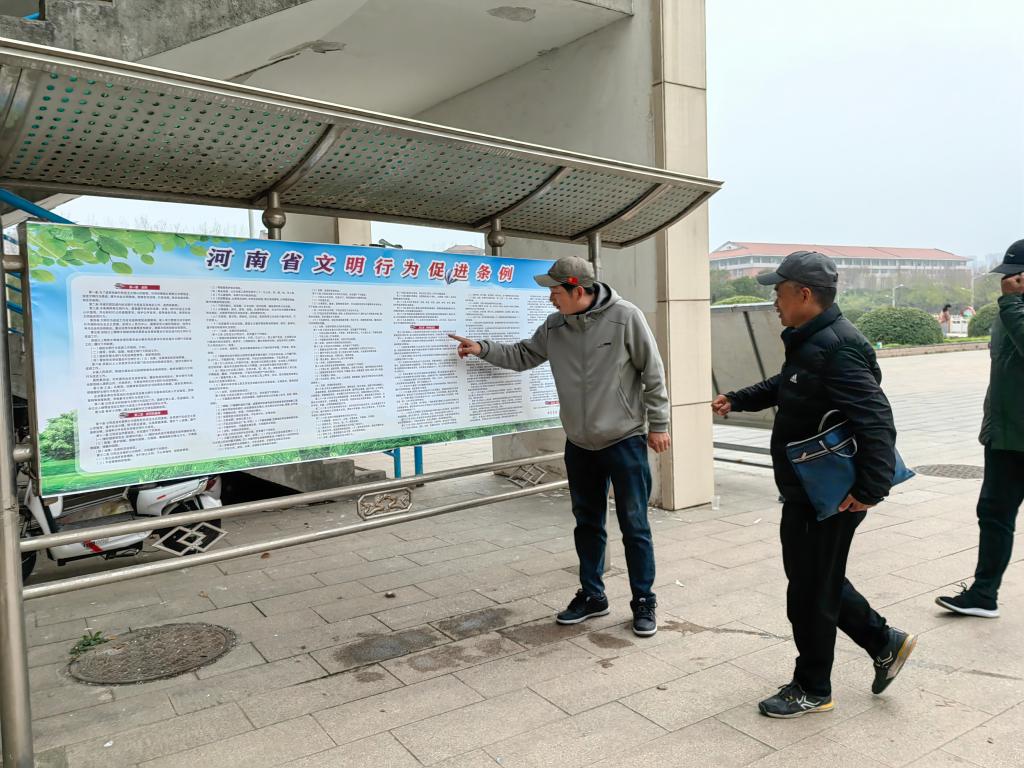 学院在宣传栏里张贴学《文明条例》宣传页,对《河南省文明行为促进条例》进行广泛宣传,并组织教师集中学习《河南省文明行为促进条例》,熟读《条例》各项基本制度和具体要求,进一步推进《条例》内容内化于心、外化于行,引导广大党员干部自觉遵守文明行为规范,养成文明行为习惯。