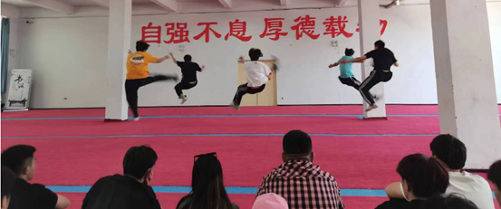 图五 我院武术系学生在调研期间与相关单位学生的武术文化交流活动