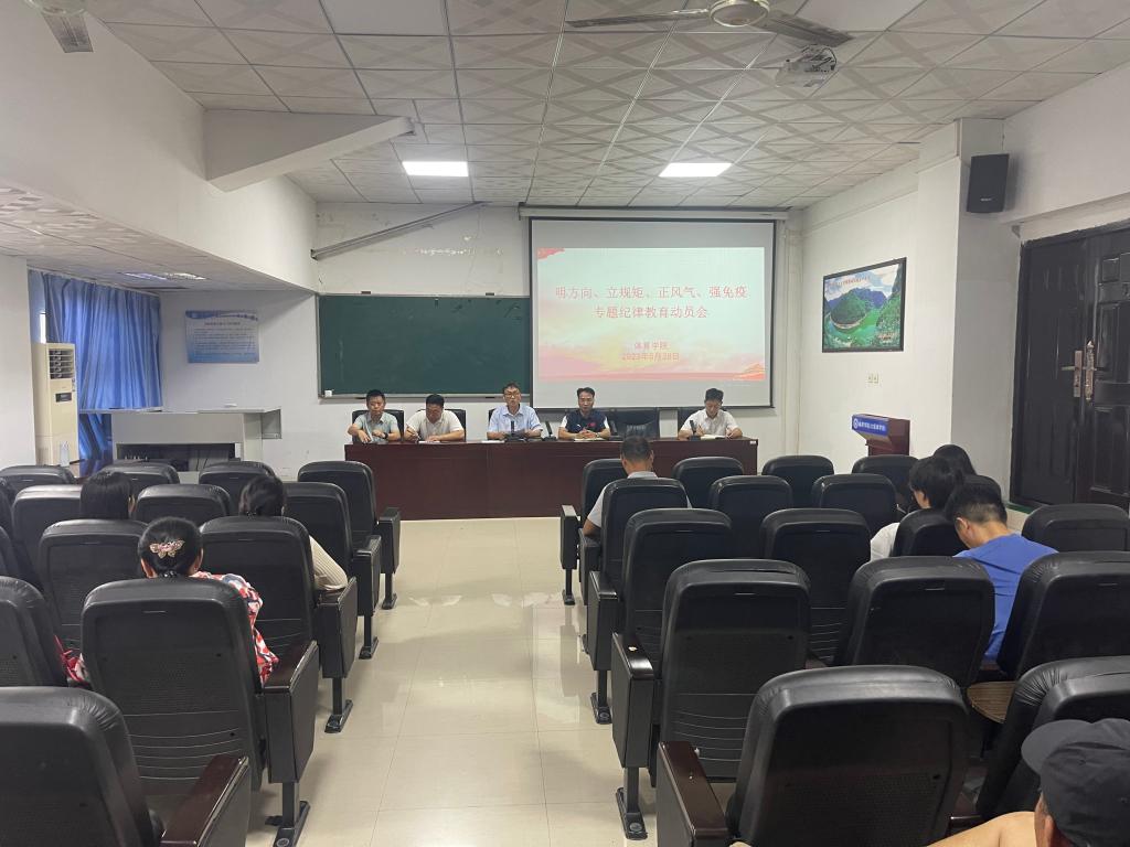 为深入推进学习贯彻习近平新时代中国特色社会主义思想主题教育,6月28日,体育学院“明方向、立规矩、正风气、强免疫”专题纪律教育动员部署会议在大会议室召开,该院全体教师参加会议,党委书记张纳新主持会议。