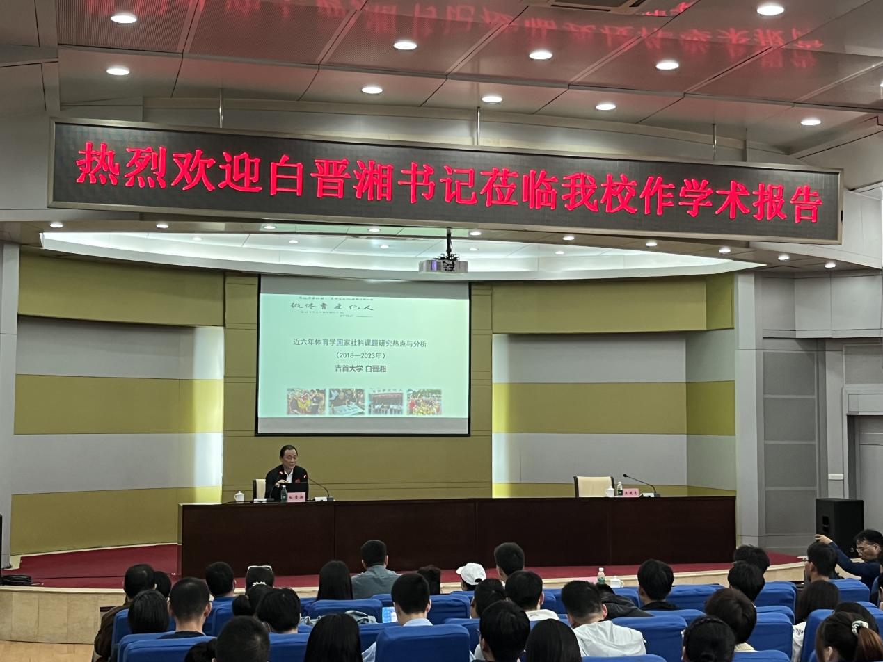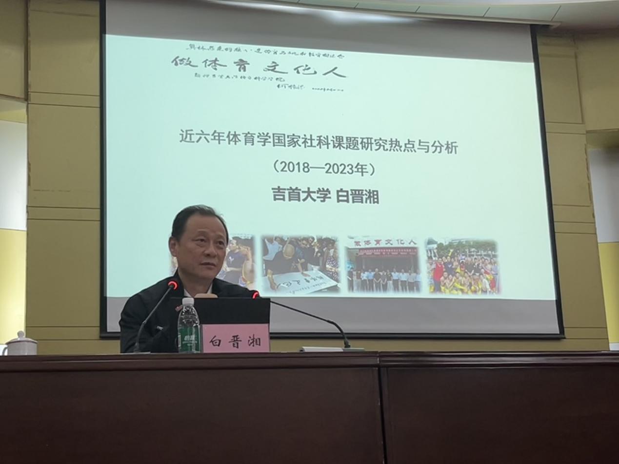 9月27日,吉首大学原党委书记、校长、博士生导师白晋湘教授在学校圆形报告厅为我校教师作了题为《近六年体育学国家社科课题研究热点与分析》的学术报告,学校相关学科教师参加了报告会。
