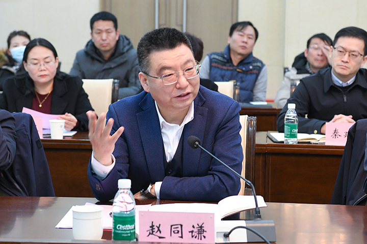 赵同谦讲话。他指出,太极拳学科建设是塑造“行走河南·读懂中国”品牌的重要载体,是加快建设体育强省、体育强国的重要内容,也是推动学校高质量发展的重大机遇,承载着各位领导的殷切希望。学校将不辱使命,全力做好太极拳学科建设工作,努力把太极拳打造成为市校融合与城市发展的名片、文化传承与国际交流的典范。