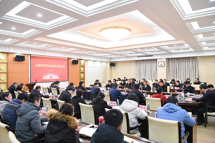 坚定文化自信,激活太极传承。2月29日—3月1日,省人大常委会调研组莅校视察指导太极拳学科建设。3月1日,学校在力行楼一楼会议室召开座谈会。省人大教科文卫委主任委员、省人大常委会教科文卫工委主任王小平,省人大教科文卫委副主任委员、中国非遗保护协会太极拳专业委员会主任姜继鼎,省人大常委会教科文卫工委副主任李晓光,省教育厅副厅长刁玉华,省科技厅副厅长刘英锋,省卫健委二级巡视员张健锋,焦作市人大常委会党组书记、主任李民生,市人大常委会党组成员、副主任卢和平,市人民政府副市长薛志杰,市人大常委会党组成员、秘书长申文燕,温县人民政府副县长王欢欢,校党委书记邹友峰、校长赵同谦、副校长李振华出席座谈会。会议由王小平主持。