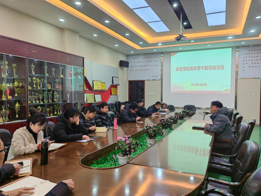 为推动体育学院青年教师发展,3月6日下午,体育学院组织青年骨干教师在小会议室召开座谈会。会议由体育学院院长刘红波主持。
