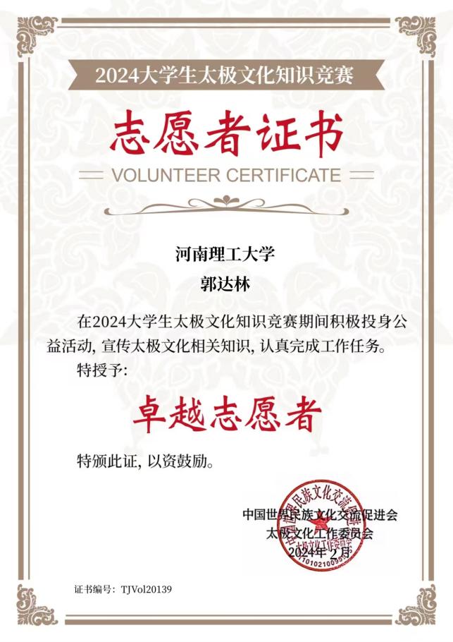 值得称赞的是,郭达林、黄嘉欣、贺艺然、余文艳不仅在本次知识竞赛中取得优异成绩,更是在活动中担任志愿者,用实际行动传递了互助友爱精神。黄嘉欣、余文艳被大赛组委会一致评选为“优秀志愿者”,贺艺然被评为“杰出志愿者”,郭达林因突出的志愿服务贡献,荣膺“卓越志愿者”。这些荣誉体现了学院学子德才兼备、全面发展的人格魅力。