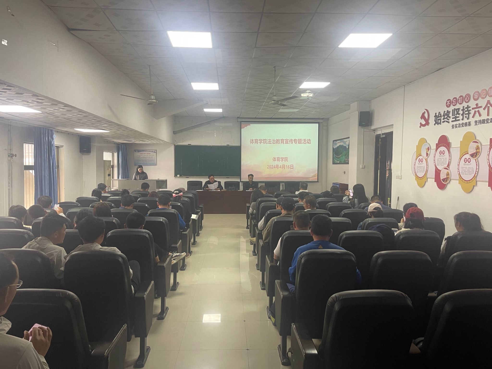 为深入学习贯彻习近平法治思想,加强法治宣传教育,4月16日,体育学院在会议室召开专题教育会议。学院全体教职工参加学习会议,会议由体育学院党委副书记马志洋主持。