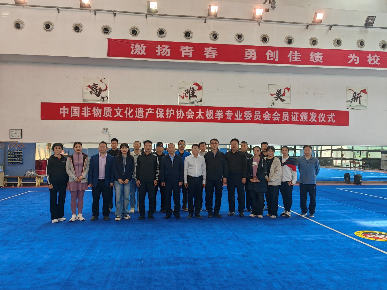 4月17日上午,中国非遗保护协会太极拳专委会在河南理工大学体育学院武术馆,举行太极拳专委会会员证颁发仪式。太极拳专委会副主任崔玉山、河南理工大学副校长边亚东出席仪式。体育学院领导班子以及太极拳专委会会员代表参加了仪式,仪式由体育学院院长刘红波主持。