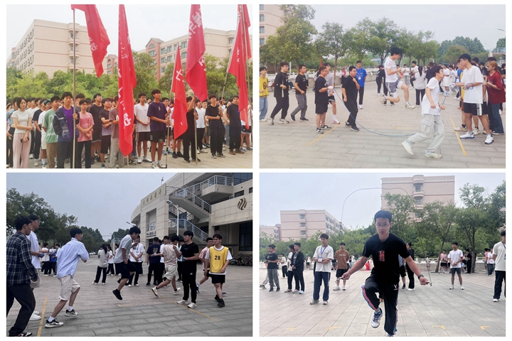 本次跳绳比赛分为一分钟跳绳个人挑战赛、花式跳绳、跳绳接力团队挑战赛三个项目。在个人挑战赛中,参赛队员们摩拳擦掌、斗志昂扬。哨声响起,队员们各显“绳”通、全力以赴,条条细绳卷起风声,手中跳绳不停晃动,现场只剩跳绳“呼呼”的响声,打在地上“噼啪”直响。花式跳绳比赛的成员展现出各式各样的技术动作,从容敏捷、轻盈灵动,令人目不暇接。团体比赛中,参赛队伍紧密配合,团结协作,融为一体。现场的欢呼声、鼓掌声、呐喊声此起彼伏,展现了热烈团结的氛围与学生们积极昂扬向上的心态。