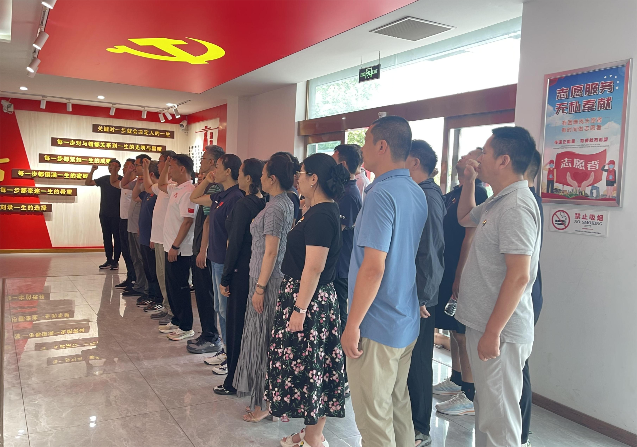 最后,全体党员重温入党誓词,铿锵有力的誓言回荡在空中,表达了大家永葆共产党人政治本色、坚定不移走中国特色社会主义道路的坚定信念。