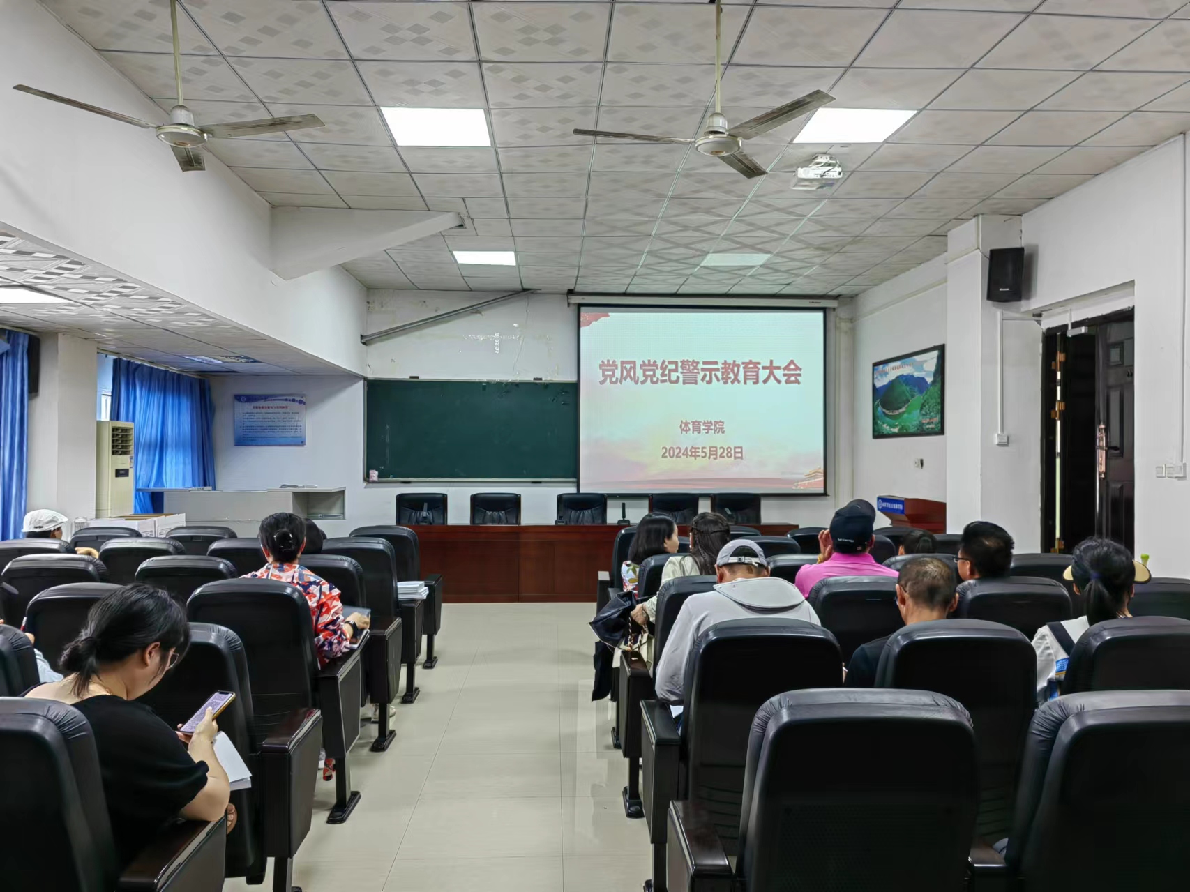 5月28日,体育学院召开党风党纪警示教育大会,学院全体党员教师参会,该院党委张纳新主持会议。