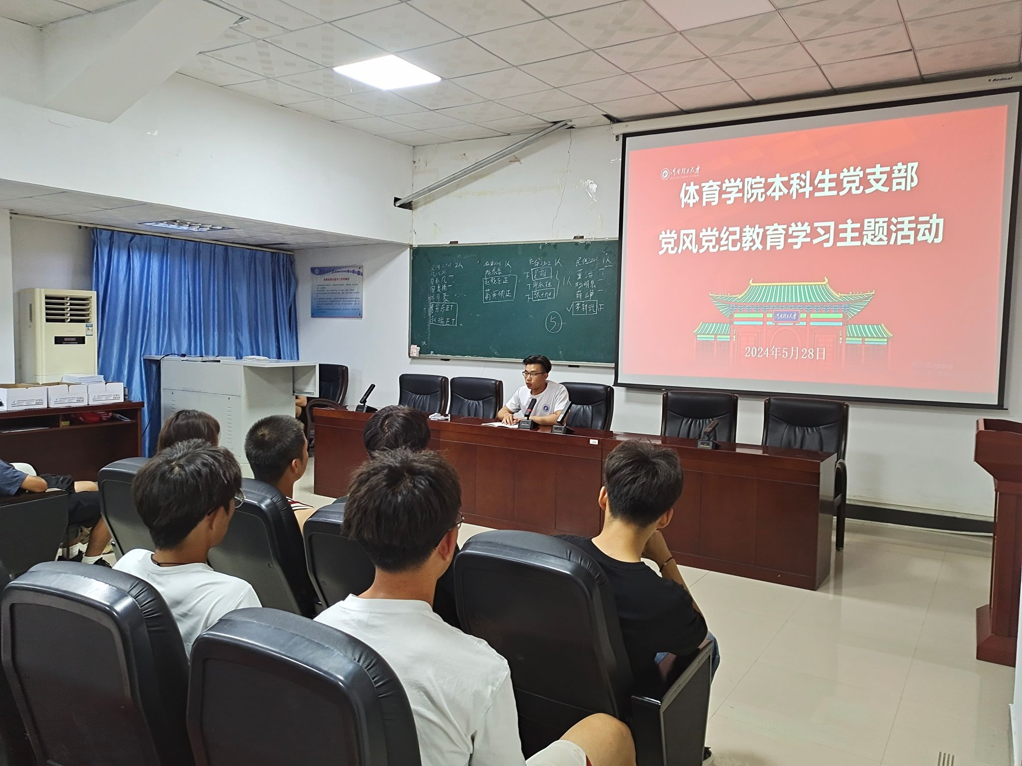 2024年5月28日,为进一步加强党风廉政建设,提升党员的纪律意识,体育学院本科生党支部在体育学院大会议室进行了“体育学院本科生党支部党风党纪教育学习主题活动”。此次活动由体育学院党建工作主要负责人胡啸天同志主持进行。