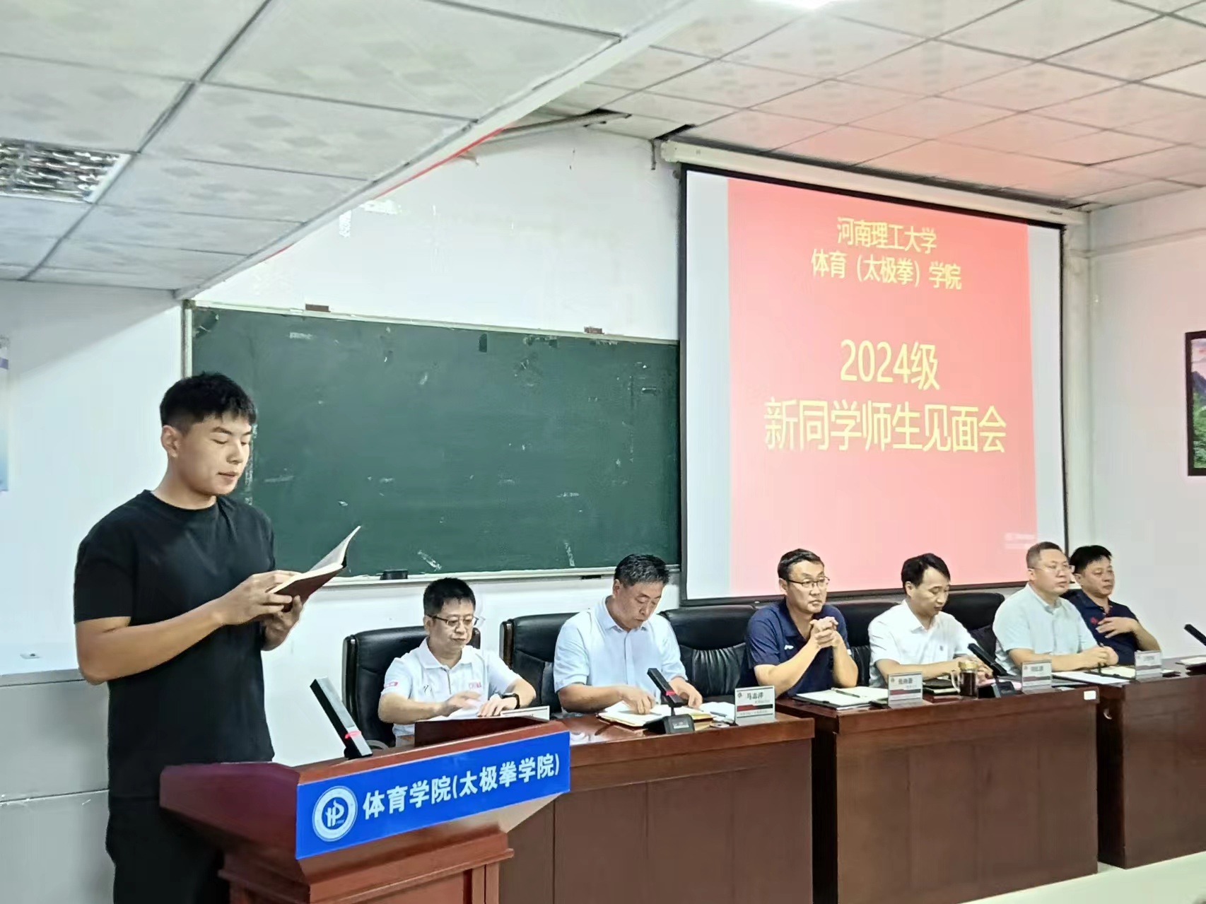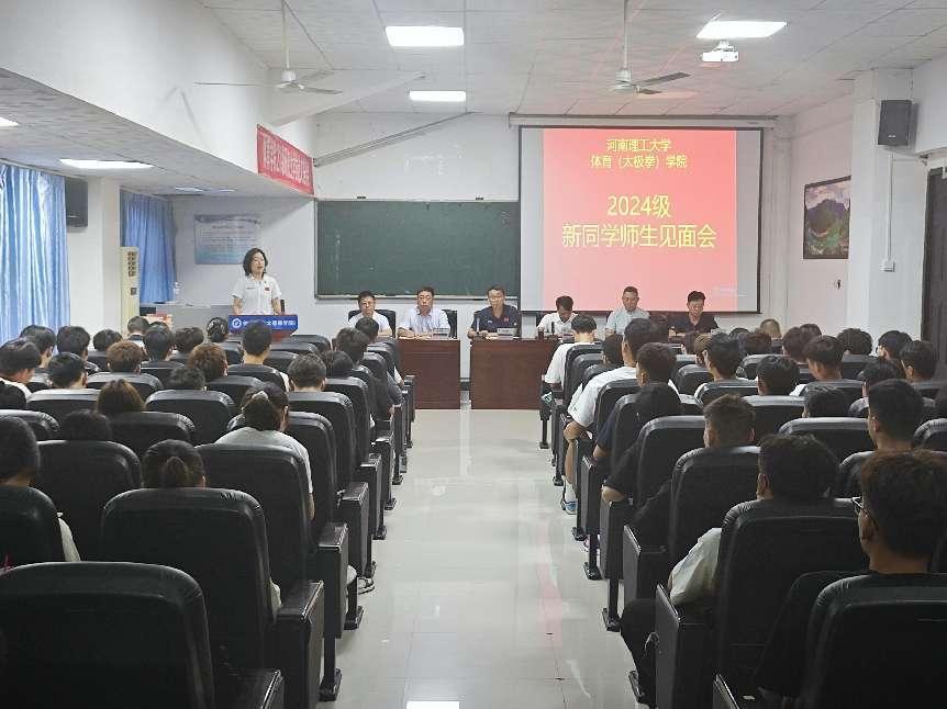 9月8日上午8:00,体育学院(太极拳学院)在学院大会议室举行2024级新生见面会暨开学第一课。体育学院领导班子、系室主任、教师代表、教练员、辅导员和140名新同学参加活动。活动由体育学院副书记主持。