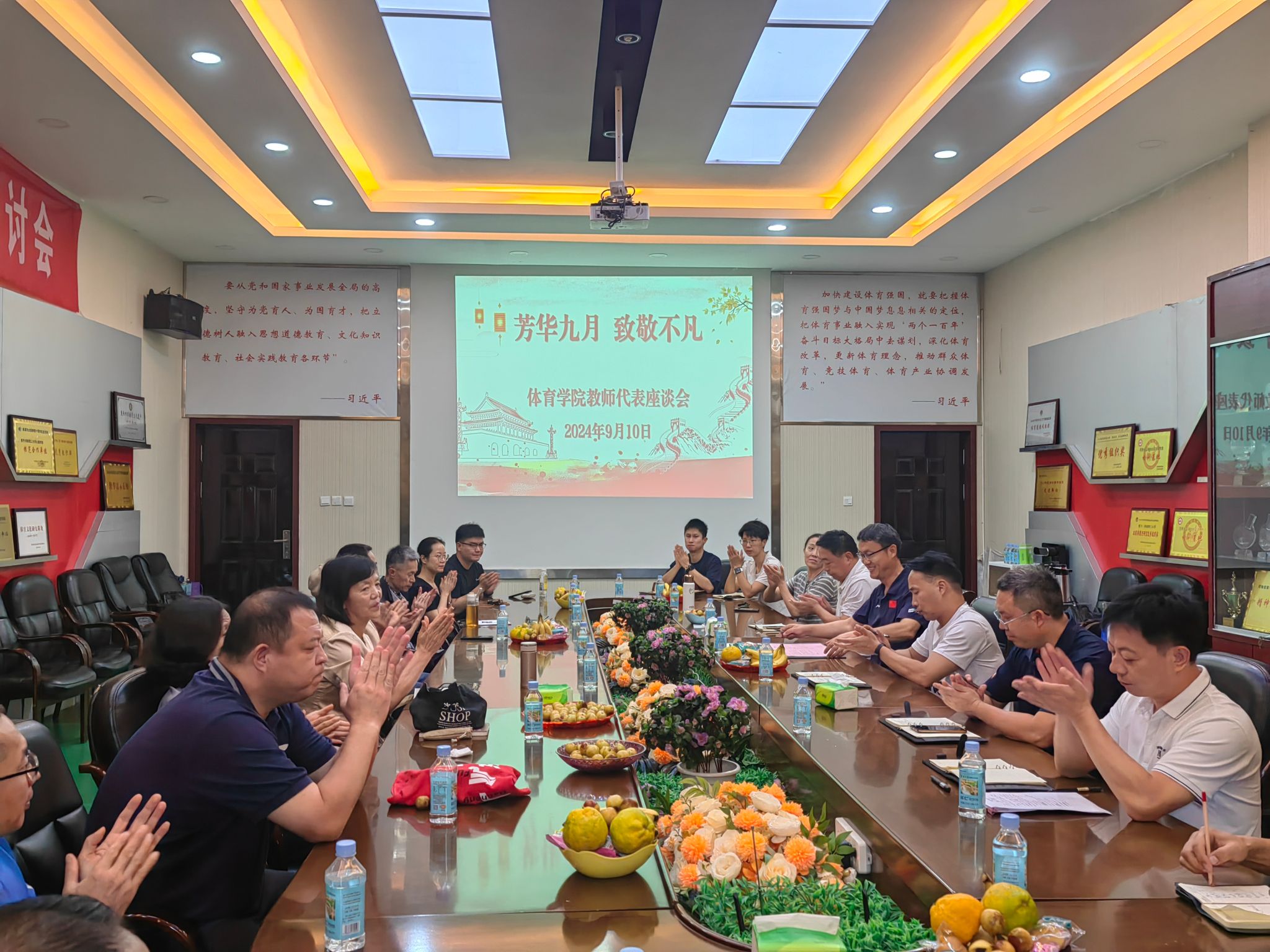 座谈会上,退休老教师们首先发言,他们深情回忆了自己在体育学院工作的点点滴滴,话语中充满了对教育事业的热爱和对学院未来的美好期许。高层次人才代表分享了他们在教学科研中的宝贵经验和心得,并对学院未来的发展提出了建设性的意见和建议。民主党派代表也积极发言,就如何更好地发挥党派优势,促进学院和谐发展提出了自己的看法。新进教师作为学院的新鲜血液,也踊跃参与讨论。他们表达了对教育事业的热爱和融入学院大家庭的归属感,同时也提出了自己在工作中遇到的困惑和挑战。老教师们则以丰富的经验和深厚的底蕴,为新教师们提供了宝贵的指导和建议。