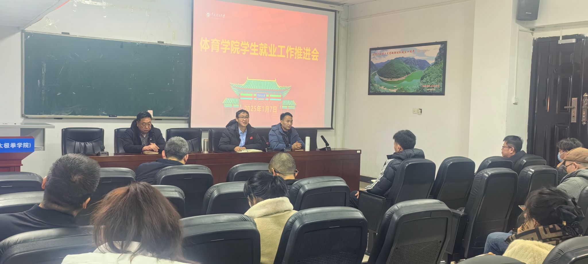 2025年1月7-8日,体育学院开展2025届毕业生就业推进会。7日下午,学院领导班子、专业教师、高水平教练员、硕士生导师和辅导员就2025届毕业生就业工作进行研讨推进。张纳新书记传达了省就业工作会议精神和学校就业工作要求,并对目前学院就业工作提出规划,要求。体育学院今年毕业164名学生(其中,研究生34名),就业形势还很艰巨,同学们目前就业积极性还不高,还存在慢就业、就业岗位不匹配,就业待遇不满意等情况。张书记要求与会人员,要继续采用一对一帮扶措施,盯紧学生就业,利用假期和下学期实习时间,把就业工作落实好。教育引导学生积极就业,要有先就业再择业的观念,工资待遇期望值不要过高。要教育引导学生考公考编、应征入伍和积极灵活就业。