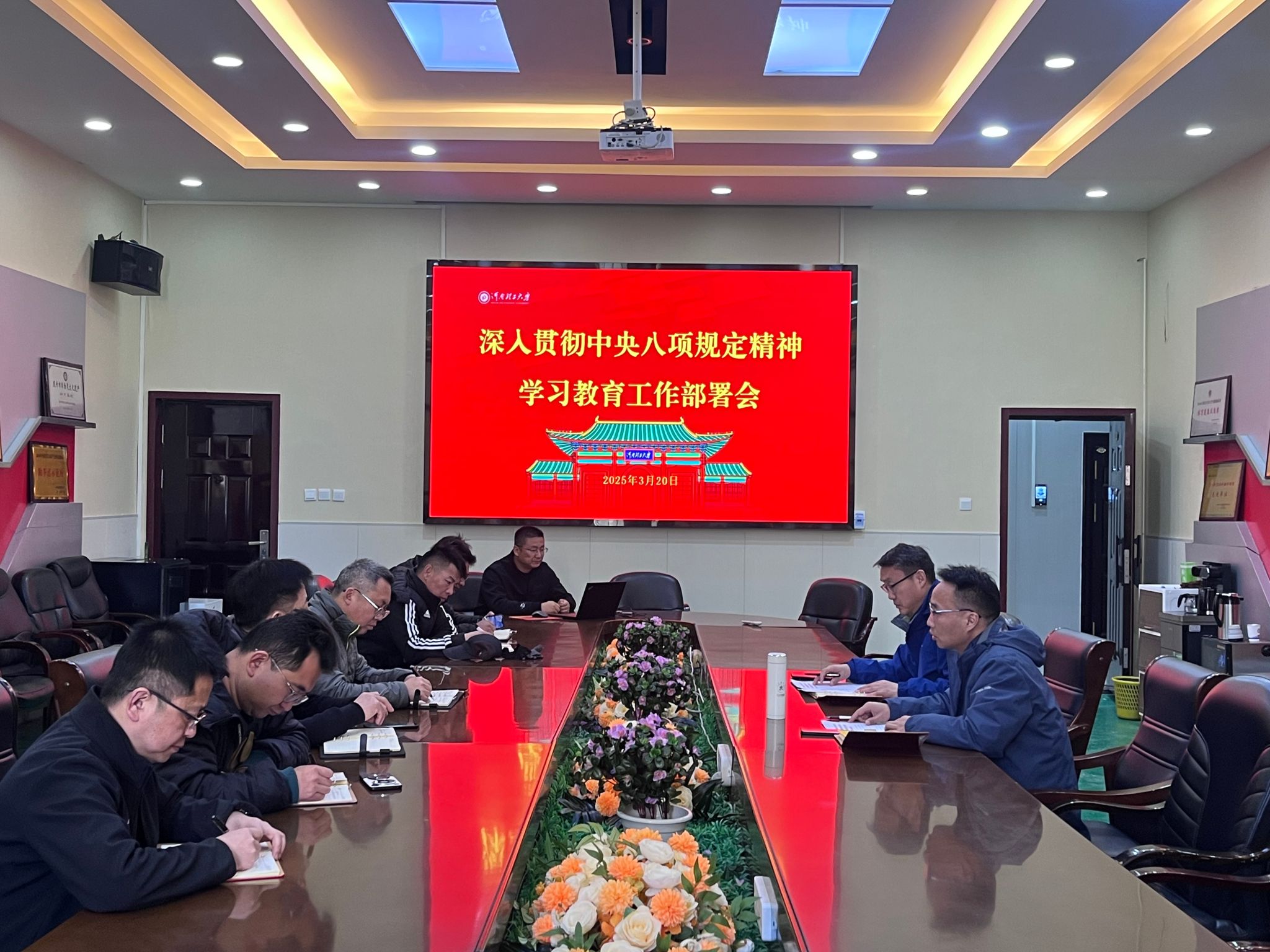 张纳新书记就学院贯彻落实相关工作提出三点要求:一是提高政治站位,深刻领会深入贯彻中央八项规定精神学习教育的意义,把学习教育作为巩固主题教育成果的重要抓手,领导班子成员要带头学深悟透、以上率下,切实提升工作能力、工作水平,改进工作作风;二是强化责任落实,按照上级要求,认真组织学习和实践,通过“三会一课”、主题党日等形式推动精神入脑入心,切实为学校双一流创建和学院博士点申报打下坚实基础;三是深化作风建设,通过学习教育,把学院作风建设推向深处,切实提升学院党群关系和干群关系,营造风清气正、积极向上、团结一致的工作氛围,为学院的发展保驾护航。