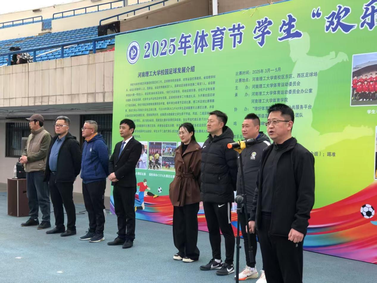 开幕式上,李娟在致辞中表示,足球是一项充满激情、愉悦身心、培养团队意识的运动,对于促进学生全面发展具有重要意义。随后,史明宣布河南理工大学2025年体育节欢乐足球比赛正式启动。赛事负责人邢刚介绍了本届足球节的整体安排,包括足球知识讲座、师生全明星对抗赛、技巧挑战赛和正赛等多项内容,旨在营造浓厚的校园足球文化氛围。