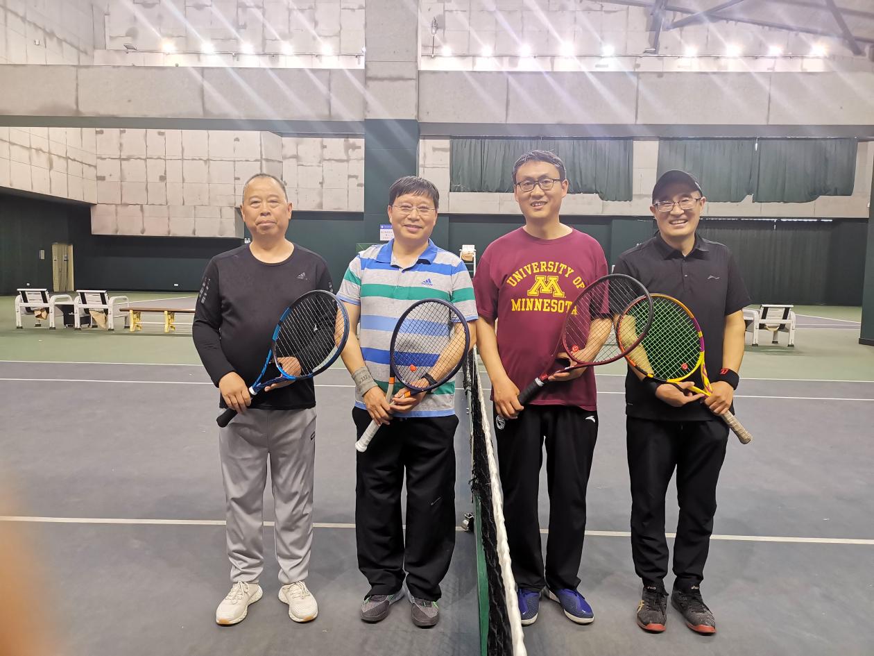 教职工们纷纷换上专业的网球装备,队友间默契的配合更是赛事的一大看点,他们通过精准的战术布局和灵活的场上应变,充分展现了精彩的球技、良好的精神面貌和团队合作精神。经过激烈角逐,最终各项目优胜者脱颖而出,体育学院一队与软件学院获得团体赛项目冠亚军;建艺学院金弘大与土木学院王一新、体育学院王枫与卢涛分别获得50岁以下双打项目冠亚军;机关工会杨小林与体育学院龚希丹、体育学院工会张纳新与杨海兵分别获得50岁以下双打项目冠亚军。