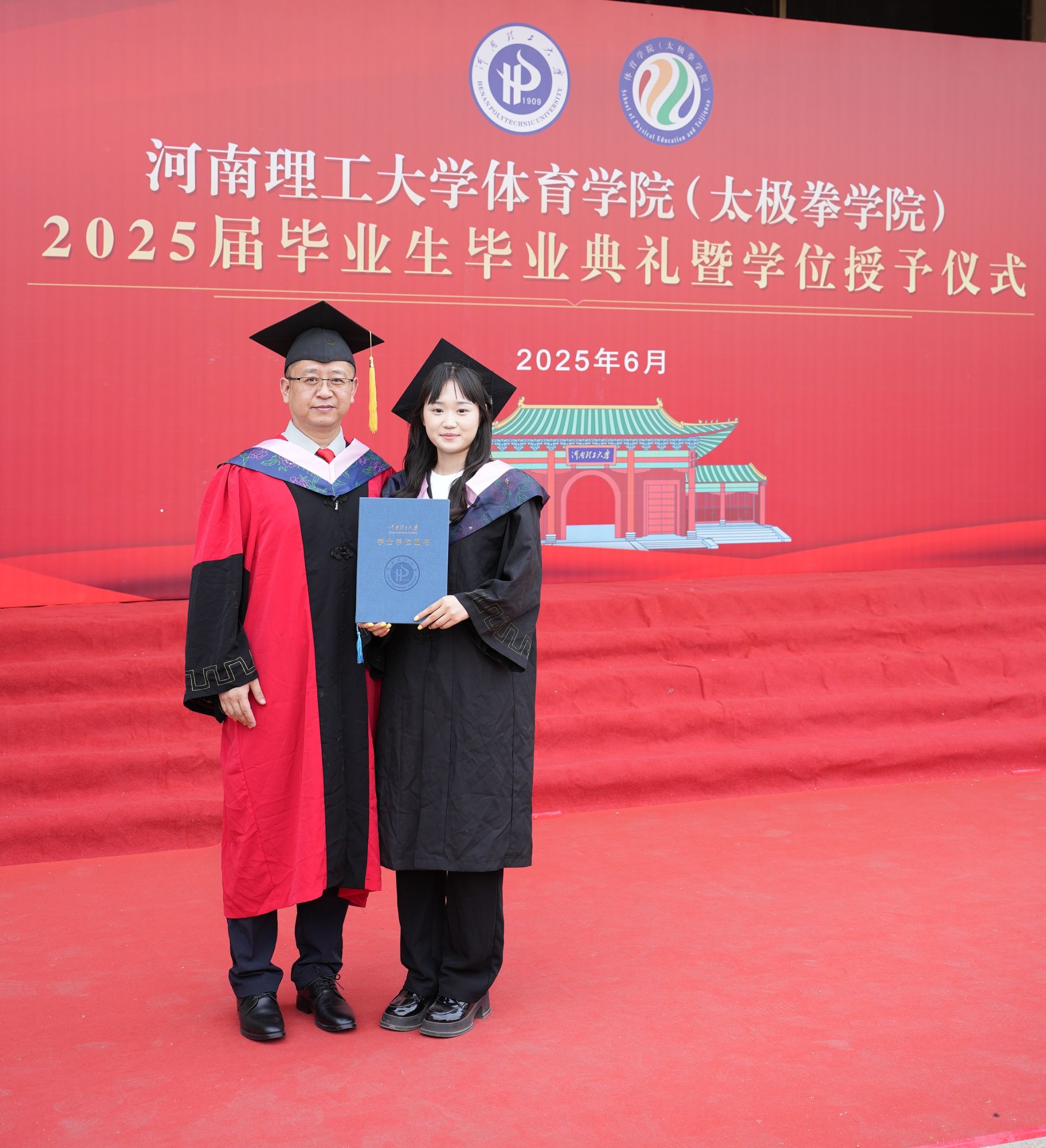 心怀热爱,奔赴山海。6月10日9:00,体育(太极拳)学院2025届毕业生毕业典礼暨学位授予仪式在实训中心西广场隆重举行。院领导班子全体成员,教师代表及2025届163名毕业生参加了典礼。仪式由学院党委副书记马志洋主持。