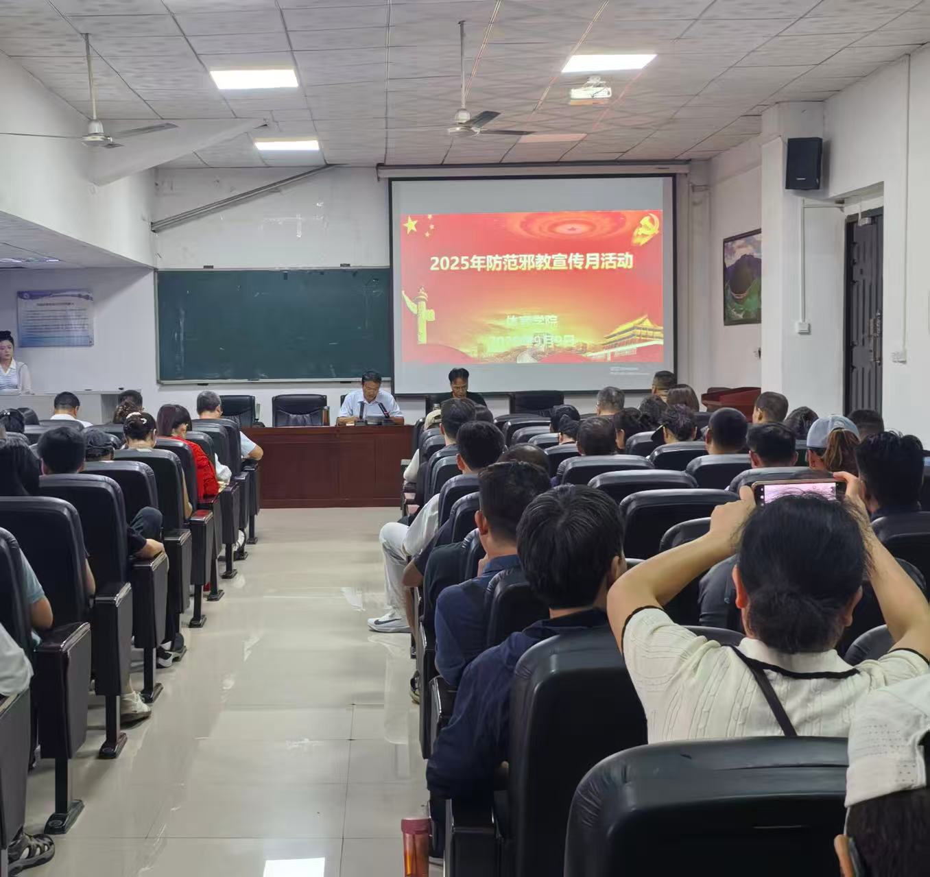 会上,学院党委书记张纳新结合当前反邪教工作形势,从邪教的本质特征、常见手段及社会危害三方面展开深入剖析。他通过典型案例,揭示邪教组织如何以“精神控制”、“利益诱惑”等手段侵蚀群众思想,强调邪教不仅破坏家庭幸福、扰乱社会秩序,更对国家安全构成严重威胁。针对高校工作实际,他提出三点要求:一是要提高政治站位,将反邪教工作纳入学院治理体系;二是要加强宣传教育,将反邪教教育融入课程思政建设;三是要关注师生思想动态,及时发现并化解潜在风险。