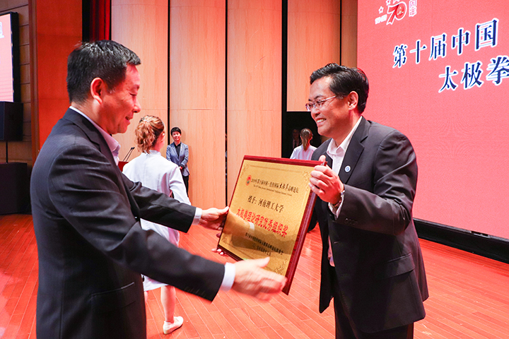 9月17日下午,2019年第十届中国焦作国际太极拳高峰论坛在学校明德楼音乐厅开幕,河南省体育局副局长马宇峰、国家体育总局武术运动管理中心武术研究部主任王立峰,西安电子科技大学华山学者特聘教授、世界身体哲学研究会主席、博士生导师张再林,中国武术协会委员、湖北省武术协会主席、武术国际A级裁判蔡仲林,武汉体育学院“东湖学者”、湖北省“楚天学者特聘教授”、中国武术协会科研委员会委员王岗,北京师范大学教授、舞龙舞狮国际级裁判、武术国家级裁判吕韶钧;焦作市委副书记刘涛、市人大常委会副主任韩明华、市政府副市长闫小杏、市政协副主席霍晓丽;校长杨小林、副校长解伟出席开幕式,来自国内外的论文作者代表、中国台湾太极文化参访团、市直有关部门负责人,部分高校领导、师生和太极拳协会相关人员等参加开幕式。开幕式由市委常委、宣传部长宫松奇主持。